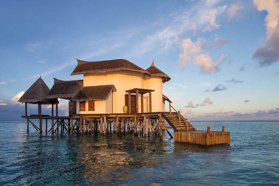 The Private Ocean Retreat at the hotel is a cocoon perfect for romantic escapes. Accessible only by their complimentary boat shuttle service, the abode allows you to luxuriate in its sunken indoor bath and rain shower, infinity pool and picture-perfect panoramas of the vast ocean from every corner. Each room has floor to ceiling windows, glass floors in the living area as privy to the underwater world, an outdoor terrace with direct access to the Indian Ocean or overwater hammocks that let you enjoy the light ocean breeze. The spaces have been intuitively designed to indulge you in lavish beauty and feed your soul.
