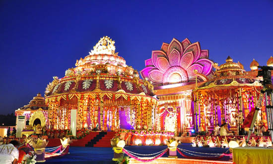 Popular Telugu actor Junior NTR tied the knot with Lakshmi Pranathi at a grand ‘Gold and Purple’ theme wedding at Hitex, Hyderabad on 5th May. The elaborate sets were created by South’s award-winning Art Director Anand Sai, and the décor was done by Hyderabad’s most sought-after Wedding Planner Dinaz Noria.