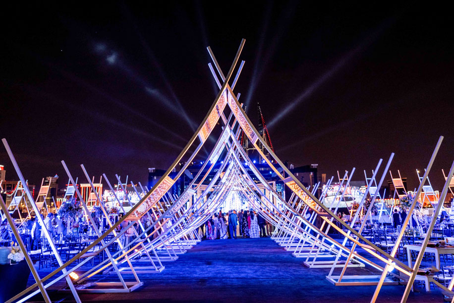 As part of their idea to incorporate local experience into the celebrations, the planners organized each function at a different location to create a celebratory map of the city. Each event was distinct from the previous and brought with it new themes, cuisines, entertainment and more.