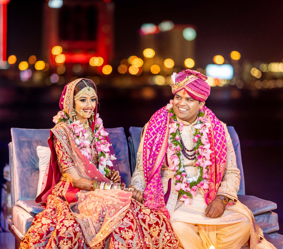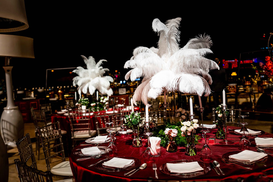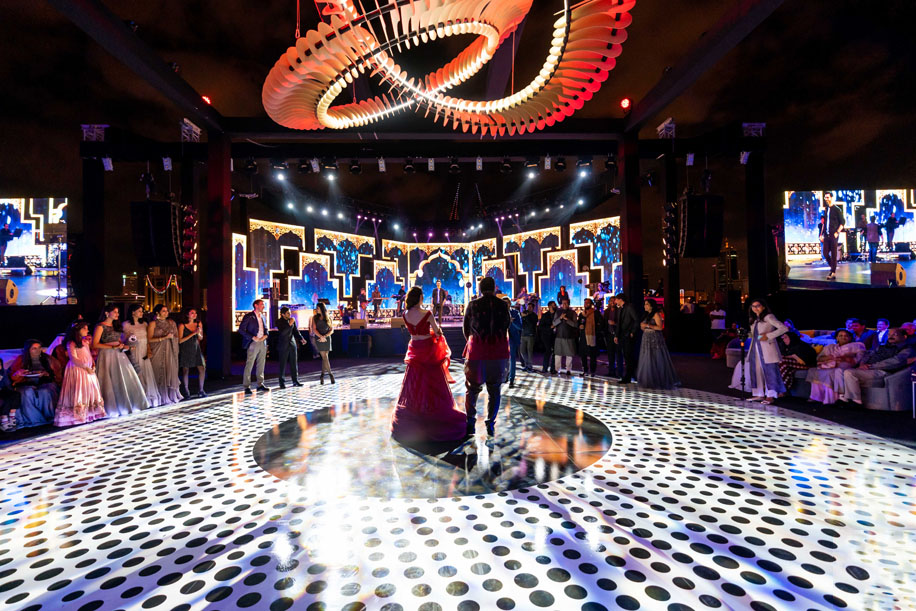 As the couple completed their wedding rituals, fireworks lit up the night sky making for a spectacular sight that left all the guests enthralled. That signaled the beginning of a night of musical entertainment. The planners had organized a performance by singer Amit Gupta who took over the stage during dinner. Then came the after-party where DJ Aman, once again got everyone to shake a leg to retro music from the ‘70s and ‘80s and party classics. Hosted on the terrace of the 51st floor of the property, with 360-degree views of the city, the night was rocking!