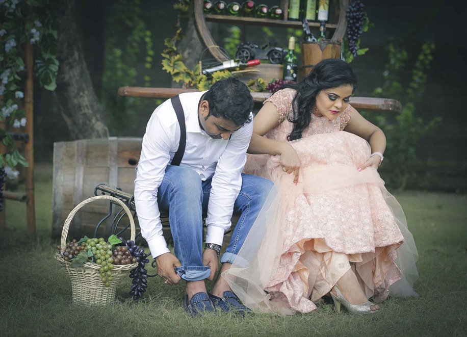 The shoot had a vintage theme to it. The real task was for Sahil to make a place look like a vineyard since the city does not have one. The location, setups and props were arranged with the help of our photography and location team. The team at Happyframes were really very helpful in putting our dream to reality. Deepanshi’s attention to detail is flawless. She does this without you even realising she is there.