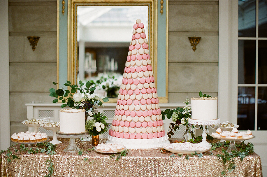 Custom wedding cakes and luxurious macaron pyramids by Parisian bakery Ladurée.