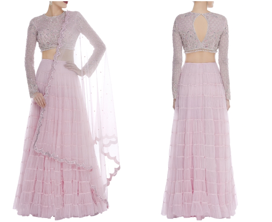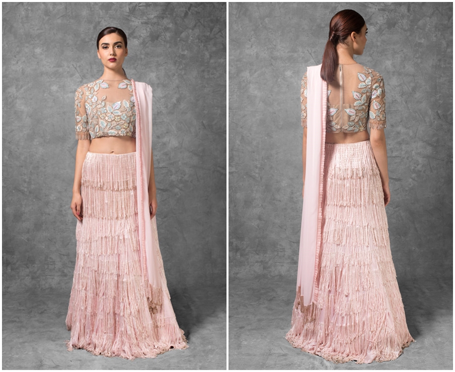 Fringed Lehenga with Embroidered Tulle Top by Manish Malhotra