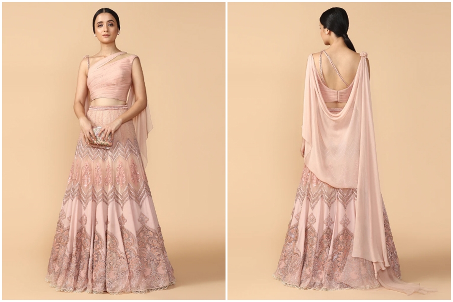 Pastel Pink Lehenga set with floral design by House of Kotwara