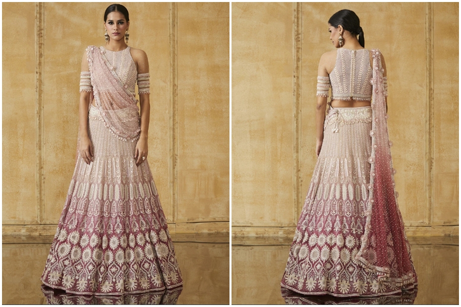 Embroidered Lehenga with attached Blouse & Dupatta by Tarun Tahiliani