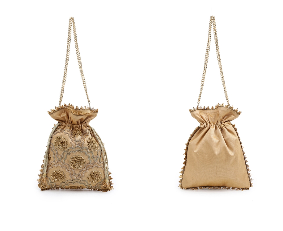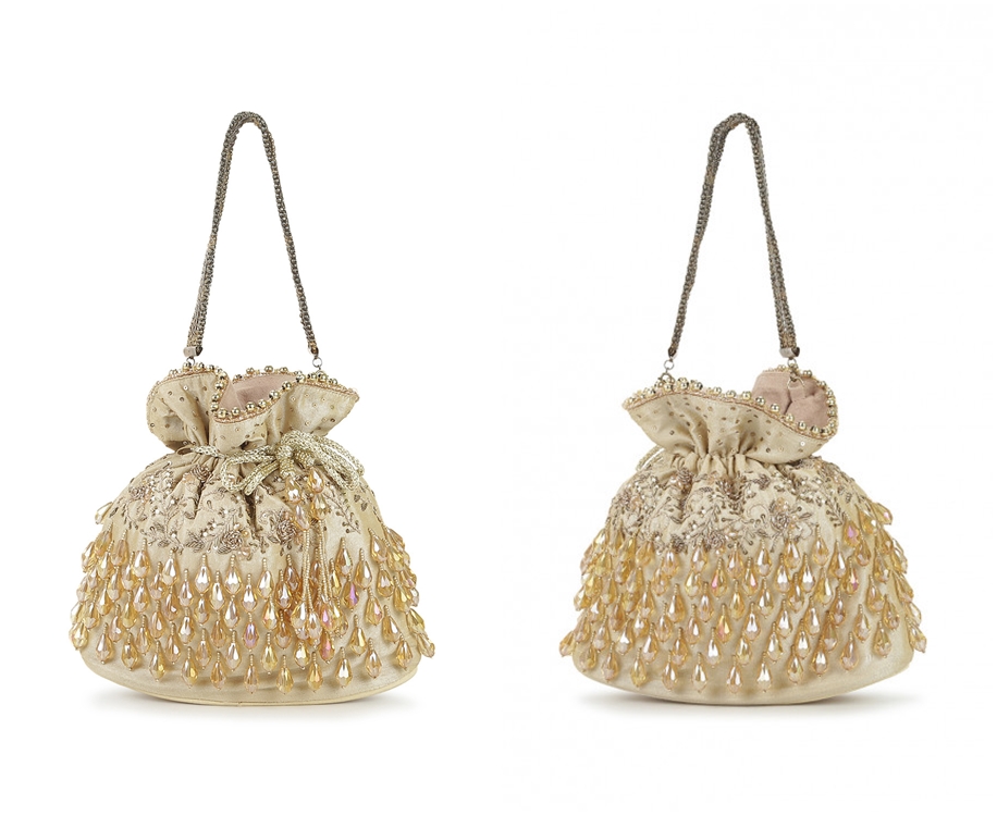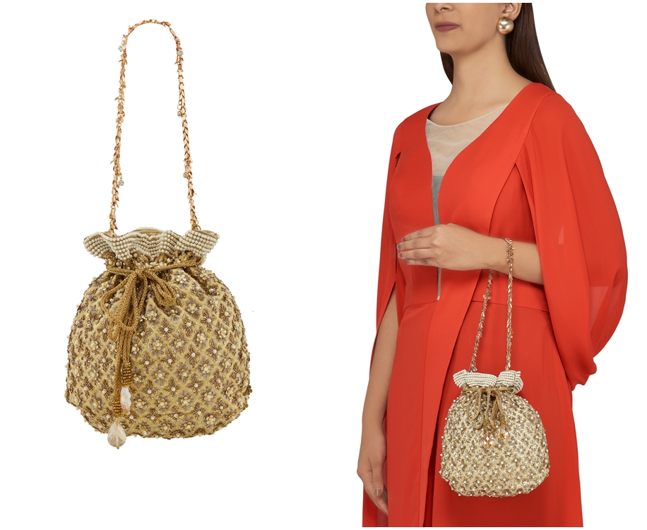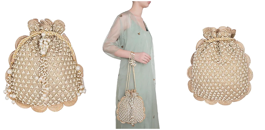 Gold Potli adorned with Pearls by Preeti Ahuja