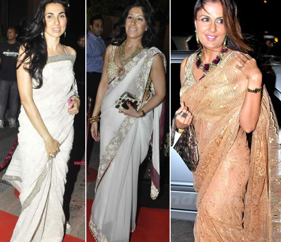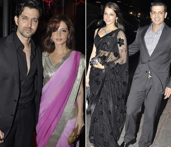 This is the second marriage for both Laila and Farhan. Laila, an artist by profession was earlier married to Delhi based Rohit Rajpal while Farhan who runs his family’s furniture business was married to actress Pooja Bedi. Many friends of Laila from Delhi attended the wedding reception. What was also interesting is that Farhan’s first wife Pooja was there with her children and her father Kabir Bedi to wish the newly wedded couple. At the reception, the guests were welcomed by Fardeen Khan, uncle and aunty Sanjay and Zarina Khan, and cousins Sussane Khan Roshan, Farah Khan, Simone Khan Arora and Zayed Khan. The Bachchans were there with Amar Singh; they were one of the earlier guests and much after they left, actress Rekha came wearing her signature gold saree.
