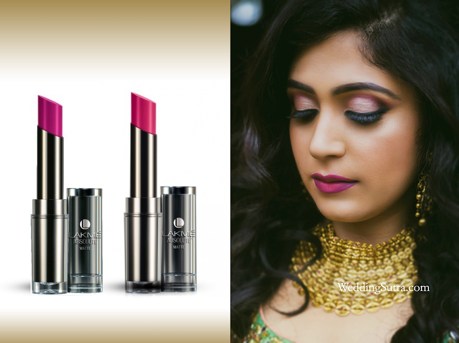 Team Zorains Studio revealed how to create this look with Lakme Absolute products. At our latest “WeddingSutra on Location”, bride-to-be Lavina got 3D lips using two shades of the Lakmé Absolute Sculpt Studio Hi-Definition Matte Lipstick in Pink Glam and Pink Me Up.