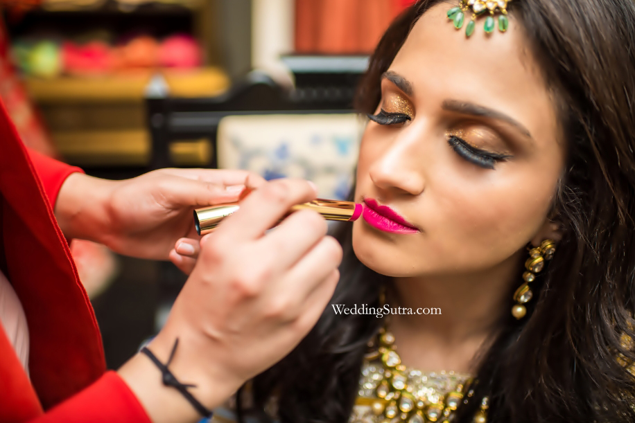 At the latest edition of WeddingSutra on Location, makeup artist Mausam Gandhi unveiled the trend with the Lakmé Absolute Matte Ultimate Lip Color With Argan Oil in Orchid Pink. The bullet left a velvet matte texture on the bride-to-be’s lips and the intense colour payoff lasted all day long. Gilded eyelids courtesy the Lakmé Absolute Illuminating Eye Shadow Palette – Gold and a warm flush via the Lakmé Absolute Sun Kissed Bronzer and our bride was a springtime nymph!