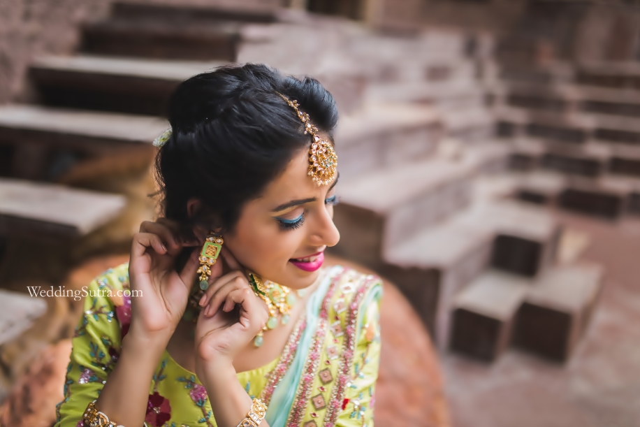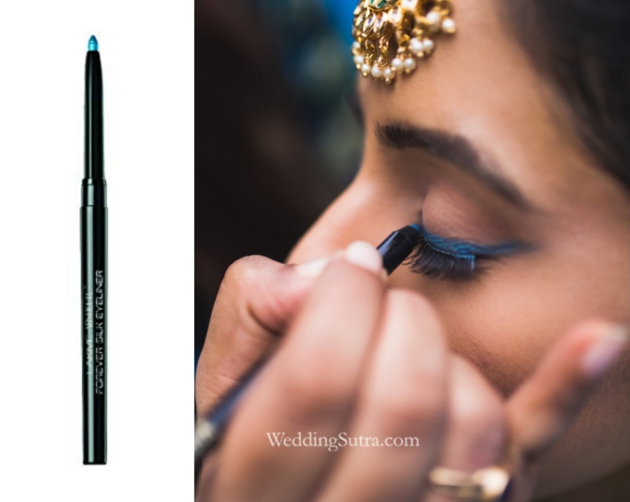 In the latest edition of WeddingSutra on Location makeup artist Mya Dang drew inspiration from this new fad and created a look for bride-to-be Ritika that was utterly refreshing. To ace this look she used the Lakmé Absolute Forever Silk Eyeliner in Blue Cosmos. The soft creamy texture of the product allowed her to line her eyes with ease ensuring clean strokes thus creating a look that was truly sharp. It’s smudge free, water-proof formula promised a long-lasting payoff. A soft rosy glow was added to her cheeks with the help of the Lakmé Absolute Illuminating Shimmer Brick and Lakmé Absolute Lip Pout in Blushing temptress from the Kareena Kapoor Khan collection was used on her lips for the final finish.