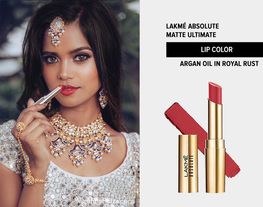 One variant of this tantalizing shade was used by make-up artist Amrita Kalyanpur in the latest edition of ‘WeddingSutra On Location.‘ She enhanced the lips of the gorgeous bride with Lakmé Absolute Matte Ultimate Lip Color with Argan Oil in Royal Rust and brushed on dreamy smokey eyes with the Lakme Absolute Illuminating Eye Shadow Palette. Check out the results for yourself!