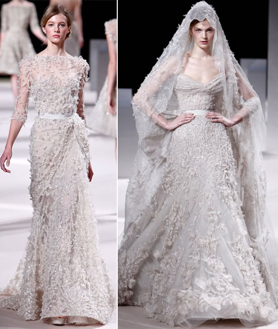 Lebanese designer Elie Saab’s romantic ethereal wedding gowns are what dreams are made of. We were surprised that Lara Dutta picked Elie Saab, since she hasn’t been spotted in one before. Its usually Roberto Cavalli for her. But we are thrilled with her choice. Elie Saab’s delicate gowns made from sumptuous fabrics with layers, overlays and transperencies are just right for a romantic beachside ceremony. His feminine aesthetics and such lovely use of embroidered lace are phenomenal. Here are some of the gowns from his latest bridal range. Such a feast for eyes, and whatever Lara picks, she will look gorgeous.