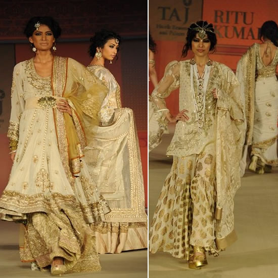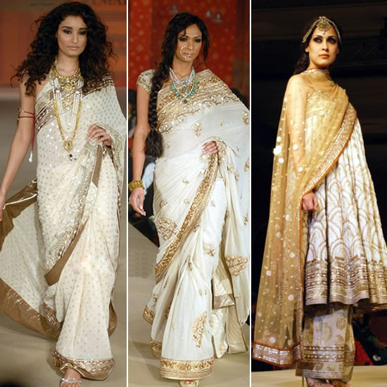 Here are some white creations from Ritu Kumar’s Falaknuma Collection. We are betting Lara’s going to pick one of the sarees. What do you think?