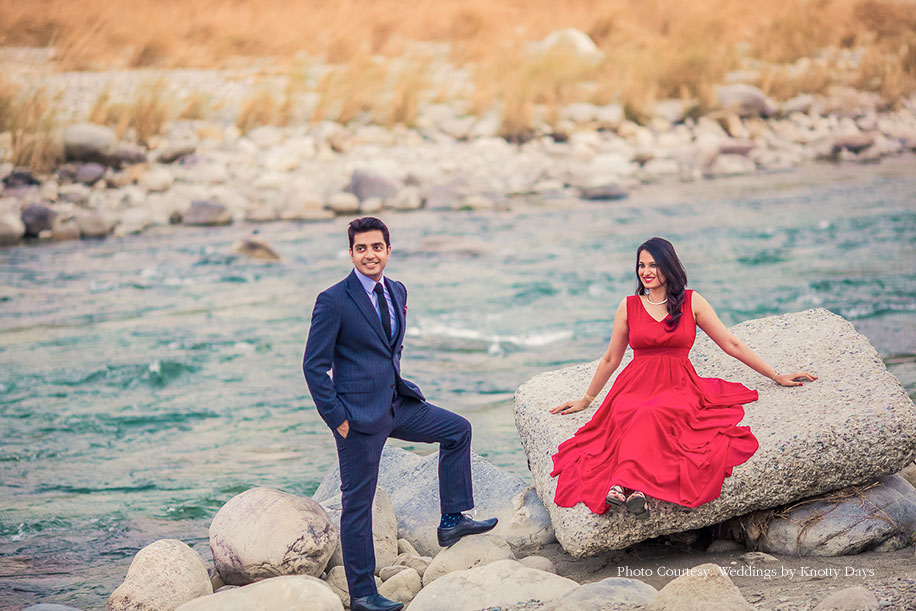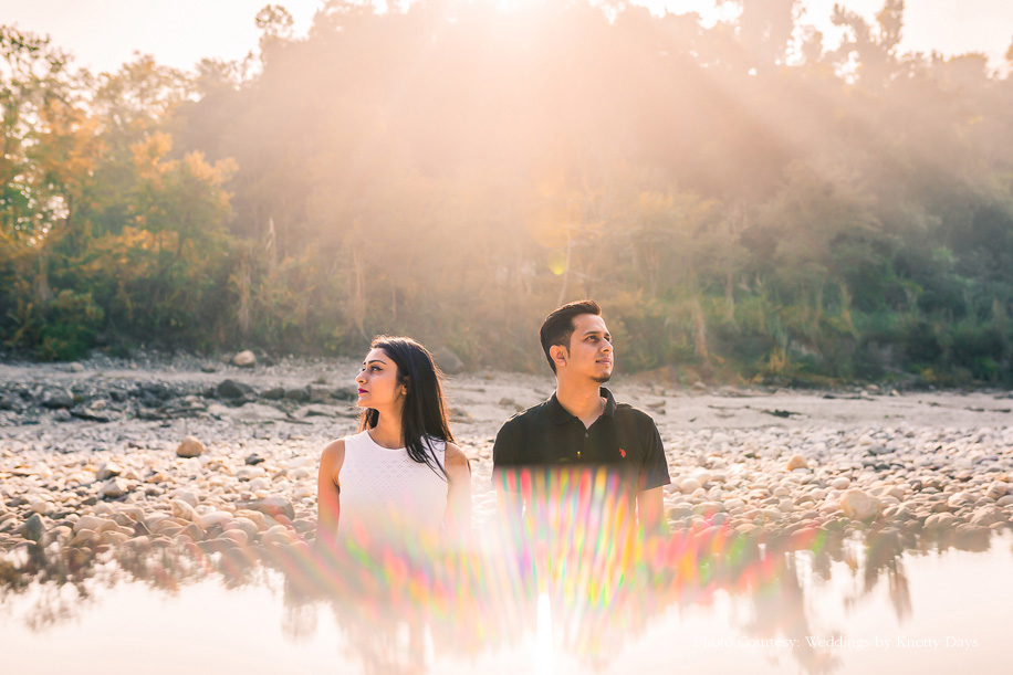 Rishikesh is steeped in religious myth and natural beauty. Scenic, away from the humdrum of city chaos, it was the perfect place for the adorable couple Devyani and Mayank to mark their moments before they got married with a beautiful pre-wedding shoot. Weddings by Knotty Days created an album that told their story perfectly.