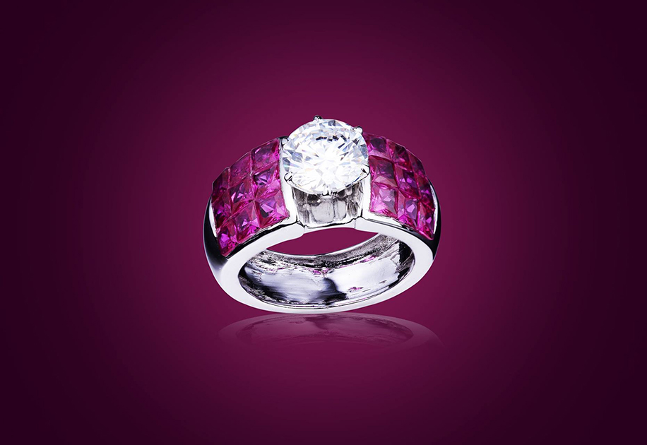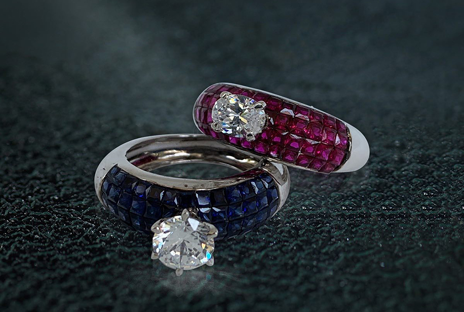 Having a hard time choosing between sapphire and ruby round rings with diamond hearts? Why not grab both? They make for perfect cocktail rings.