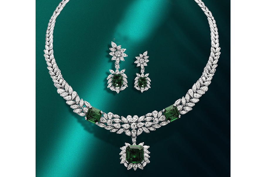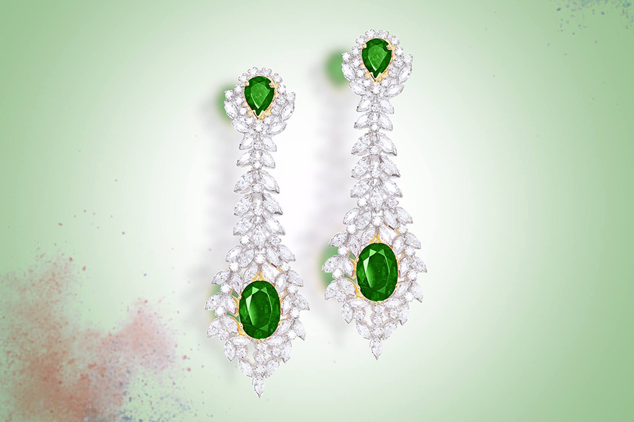 This stunner is just what you need when you wear those deep neck silk blouses with your lehengas or sarees. It flawlessly contrasts the glitter of diamonds with the lush glow of emeralds.