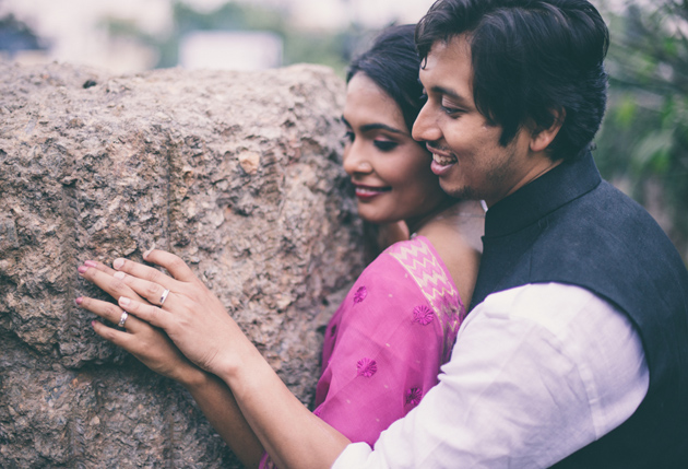 For the third photo shoot we invited Bijeta Chakraborty and Rohit Bhattacharjee, both computer science graduates from Bangalore. Bijeta works with NetApp, Rohit earlier worked with NetApp and is now with Oracle. And the duo met at a NetApp party. “At the party we spoke a bit but we got to know each other when both of us registered for the 10 km marathon in our office (I later figured out Rohit registered just to give me company). I love mornings so would look forward to the marathon practices at Cubbon park. I love the chill in the air when I wake up before sunrise, I love sprinting on wet grass with the sound of the birds reverberating. Rohit is the opposite. He firmly believes mornings can only start at ten. But he would wake up by five in the morning, pick me up from my doorstep, and get me to the park before six. I knew he was interested. But his efforts made me weak in the knees.”