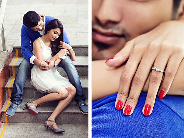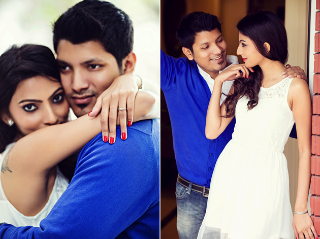 For the second photo shoot we invited Deepika Naik and Showbhik Goswamy from Bangalore. The duo met when they were working in the same Multinational Company in 2009. Deepika says: “We had common friends at the workplace, but we talked to each other for the first time at the office Christmas party.” They started hanging out with friends during the lunch breaks or post work hours but Deepika smiles and recalls how they didn’t really get along initially. “We probably felt we had nothing in common”, explains Showbhik: “We had arguments during some discussions so obviously our views were quite divergent then.” They continued to hang out with the group, and one of their friends even sensed something was brewing between Deepika and Showbhik. “I was livid when I heard it, the last thing I wanted was to be linked to him, and for a few days I avoided talking to him in front of others”, says Deepika. But over a period of time a lot happened, and at some point they starting liking each other. “Suddenly the arguments stopped”, says Showbhik “and on 27th December, around a year after we first met, I proposed to her.” Deepika shares: “By then I was also madly in love with him. Showbhik proposed to me in ‘filmy’ style on the street in front of my apartment. If I were to know that he’ll propose in the middle of the road, I would have been embarrassed at the thought, but this was a big surprise and one of the most beautiful moments of my life.”