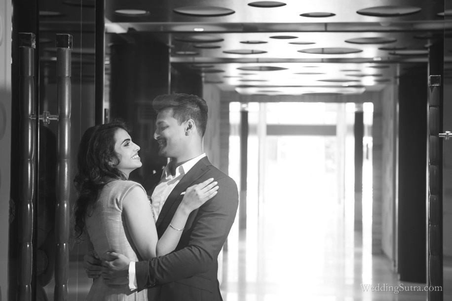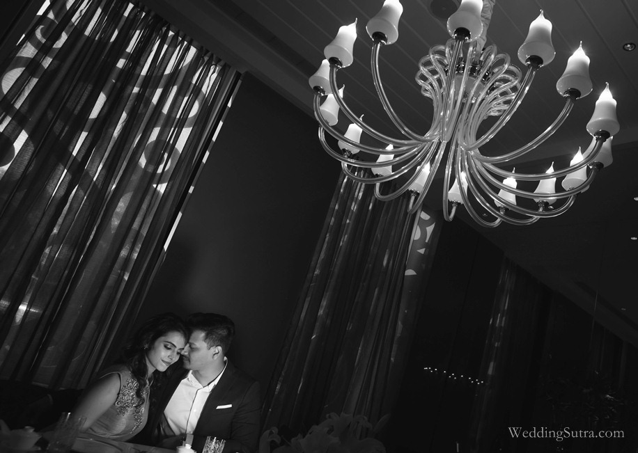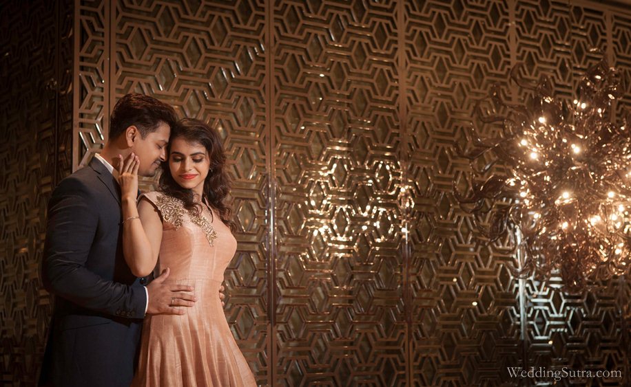 The location for their shoot was Mumbai’s newest luxury hotel– Taj Santacruz. The expansive lobby at Taj Santacruz surrounded by Indian artefacts and the soft light emerging from the overhead crystal and glass chandeliers provided an opulent backdrop to the shoot. And with its distinctive design, spacious rooms and warm service, it was truly a delight for Team WeddingSutra to spend the day and photograph the beautiful couple at the hotel.