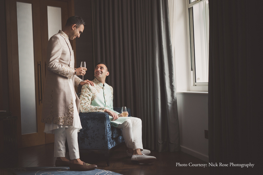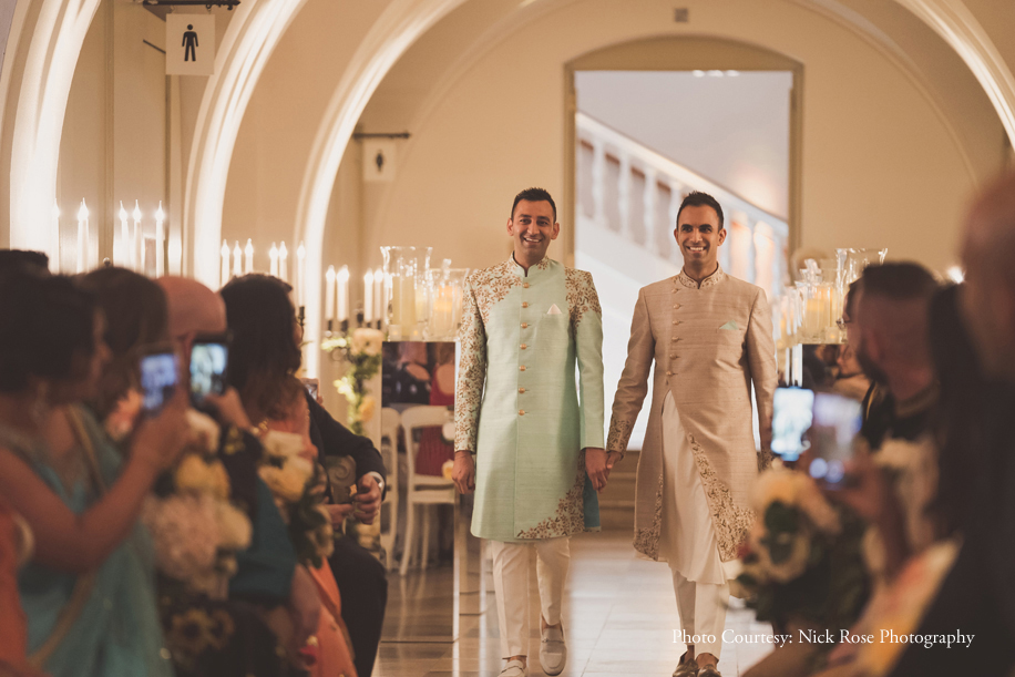 As the children of first generation Indian immigrants to the UK, both sets of families have had personal obstacles to overcome. And so, as they stood facing each other ready to exchange vows, they knew that this was the perfect track to celebrate their union. “Despite having gone through the motions of coming out to our family and friends, there still remained the fear of what people will say and how it may still impact our families. However, there comes a point in your life where you have to stand up to the idle gossip, fear and put yourself and the person you love first,” says Milan.