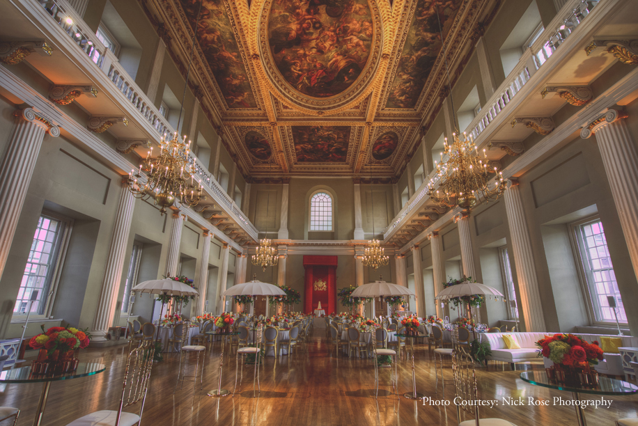 “Have fun on your day as it flies by so quickly. Soak in your surroundings and allow your guests to enjoy the venue and its history. We wanted our guests to enjoy the magnificent Ruben’s ceiling at Banqueting House. Therefore, we included elements such as mirror tabletops that allowed them to view the ceiling whilst enjoying their dinner.