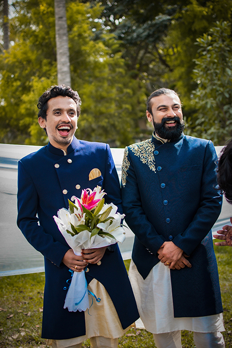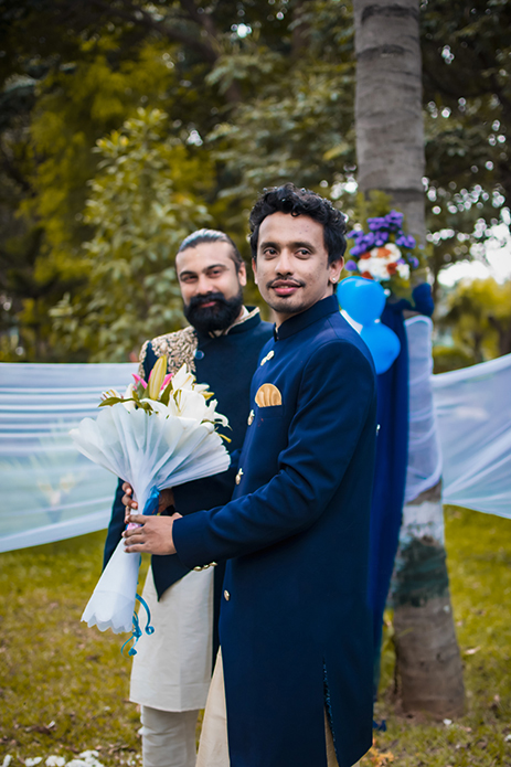 “We tied the knot in an English style non-denominational wedding with just 50 of our closest friends, family and colleagues, including a few media professionals. The intimate soiree was held outdoors against a natural background and looked and felt enchanting with soothing blue decor. The bouquet toss was the highlight of the wedding.”