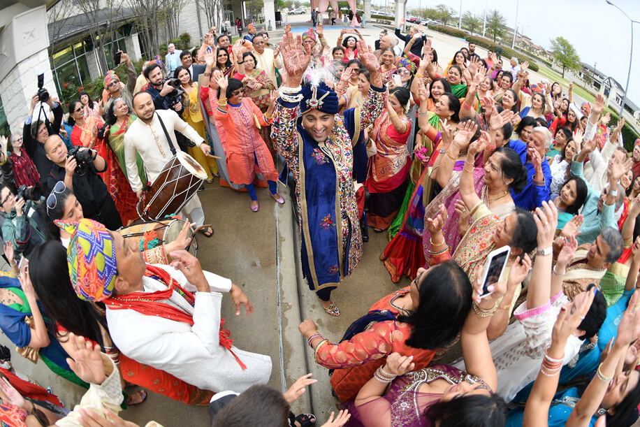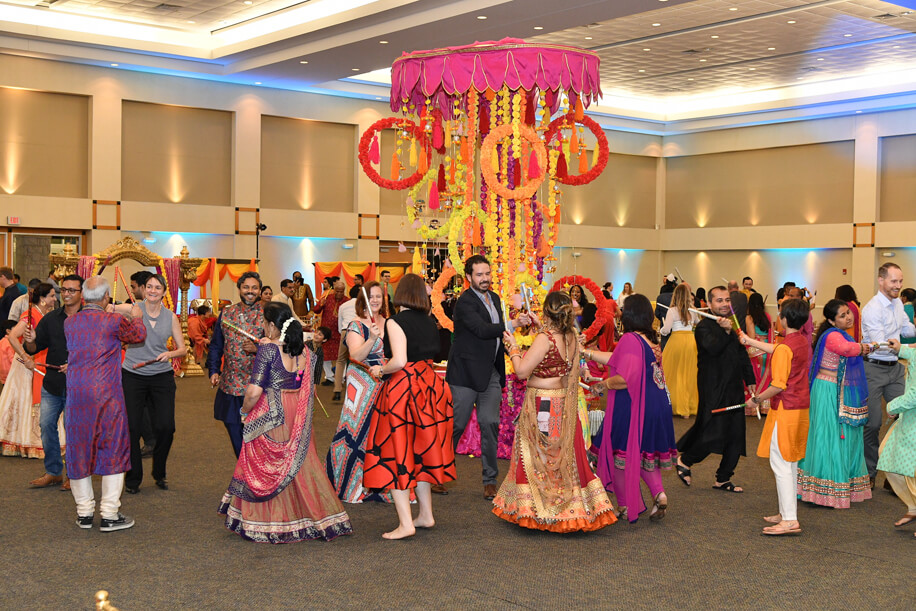 The wedding was a grand two-day affair. The first day witnessed a fun garba night where the couple’s family members dressed in vivid colors and gave impressively choreographed performances and danced the traditional garba-raas.
