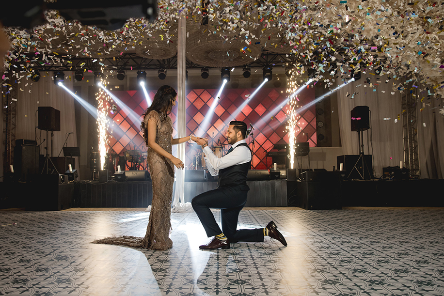 A high-energy celebration till the very end, Lehar Gupta and Vishesh Naredi’s Bahrain-based engagement party had their guests grooving till the wee hours of the morning. Designed by WeddingSutra Favorite – Evolve Weddings, this engagement celebration consisted of a series of glitzy events that had everyone in the mood to party!
