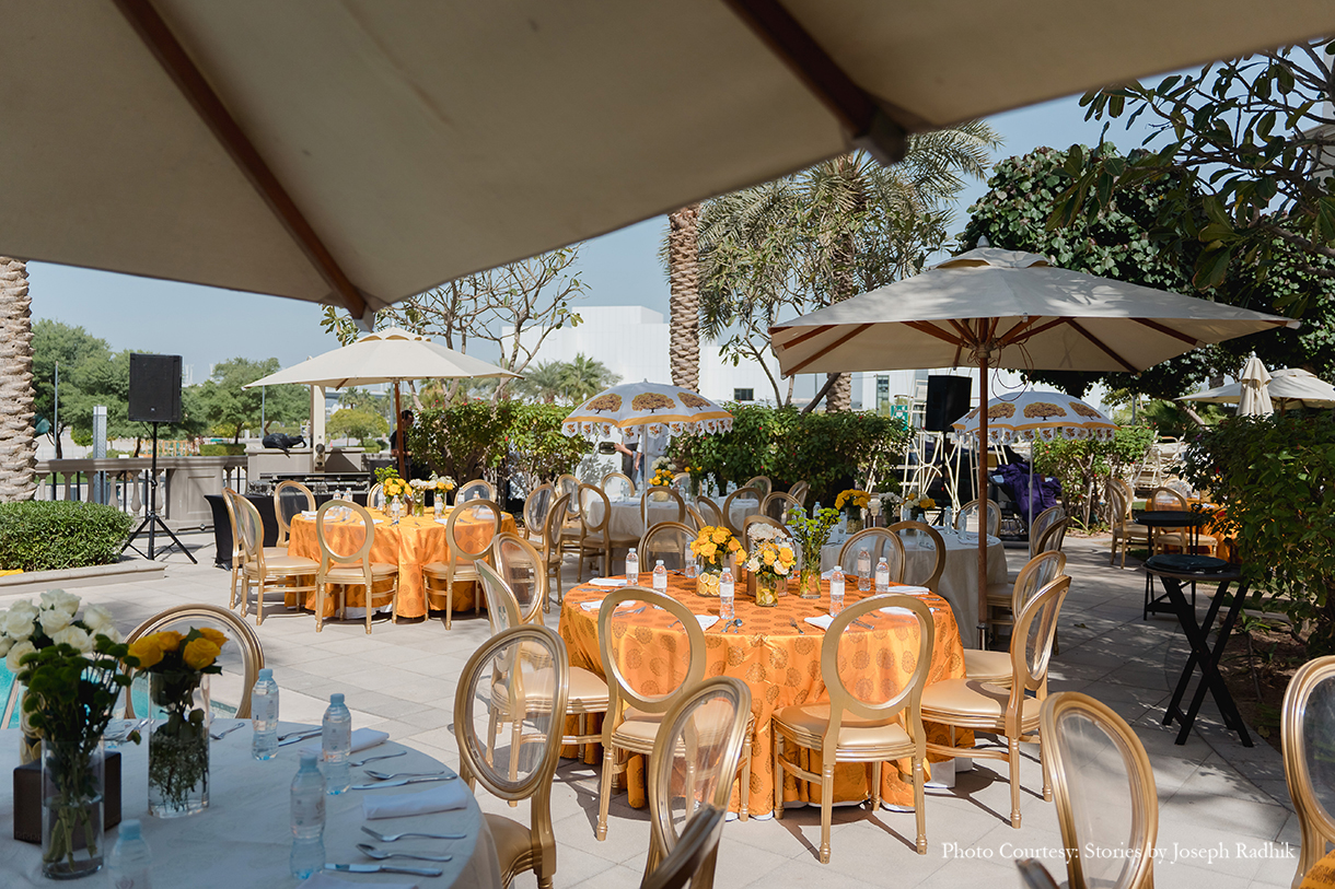 The wedding was held in a tradition that beautifully blended the venue’s Italian heritage with the local Arabian culture. The venue, offering unparalleled facilities, provided a breathtaking backdrop of Dubai Creek with unobstructed views. With their expert in hospitality, Palazzo Versace Dubai effortlessly accommodated exclusive requests in both indoor and outdoor spaces, ensuring an elegant and memorable experience for all the guests.”