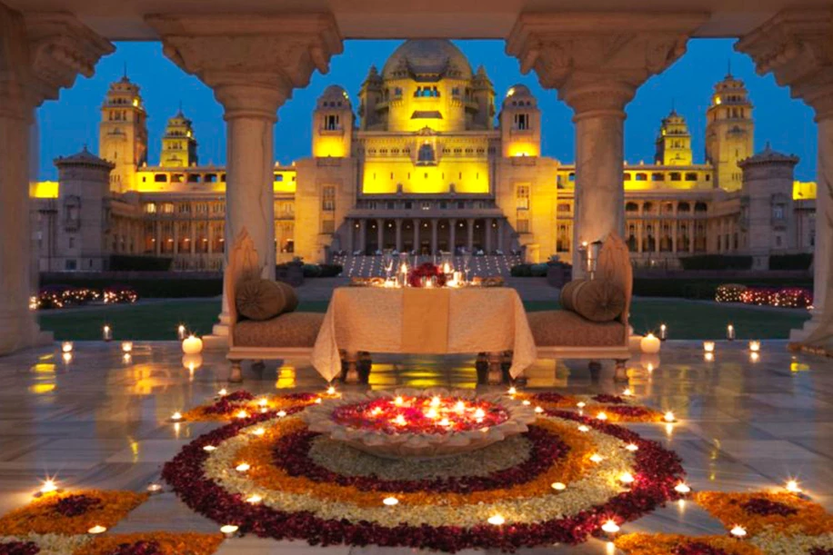 Imagine striding down a majestic, candle-lit staircase together like a royal couple at the iconic Umaid Bhawan Palace in Jodhpur before the big proposal unfolds.
