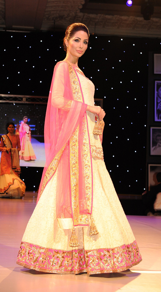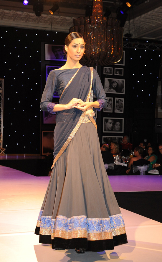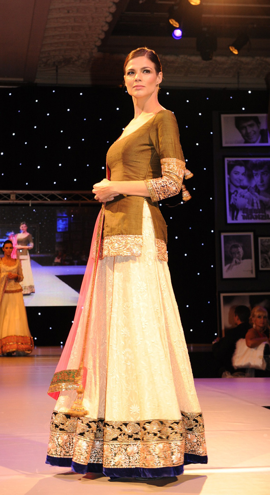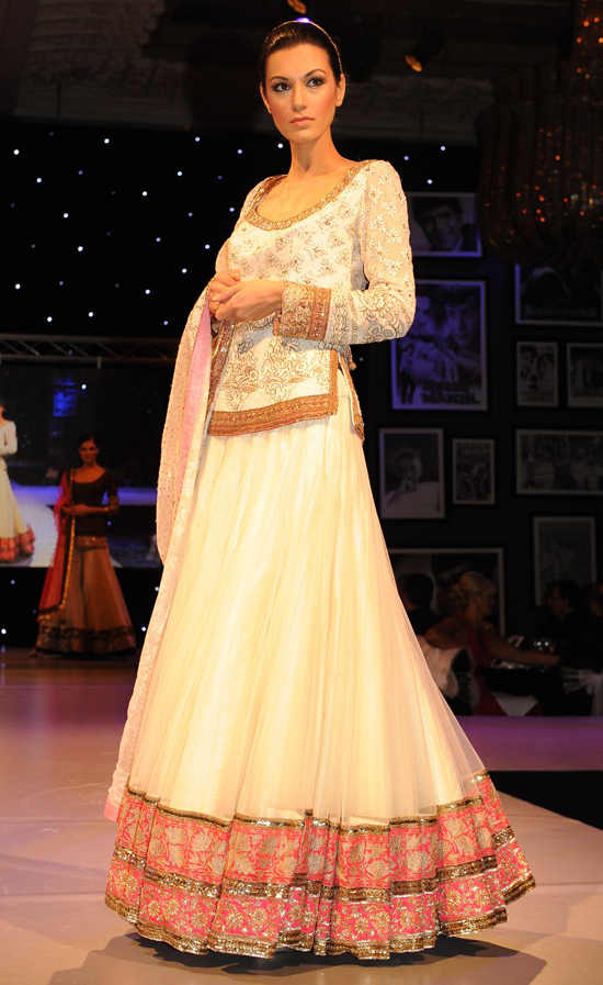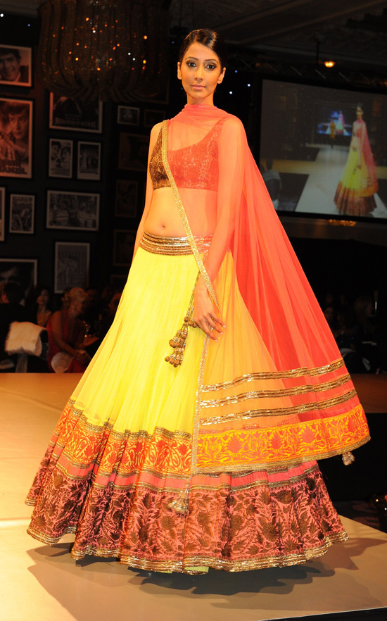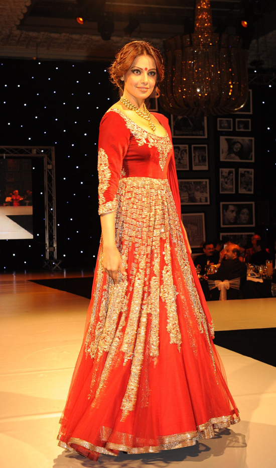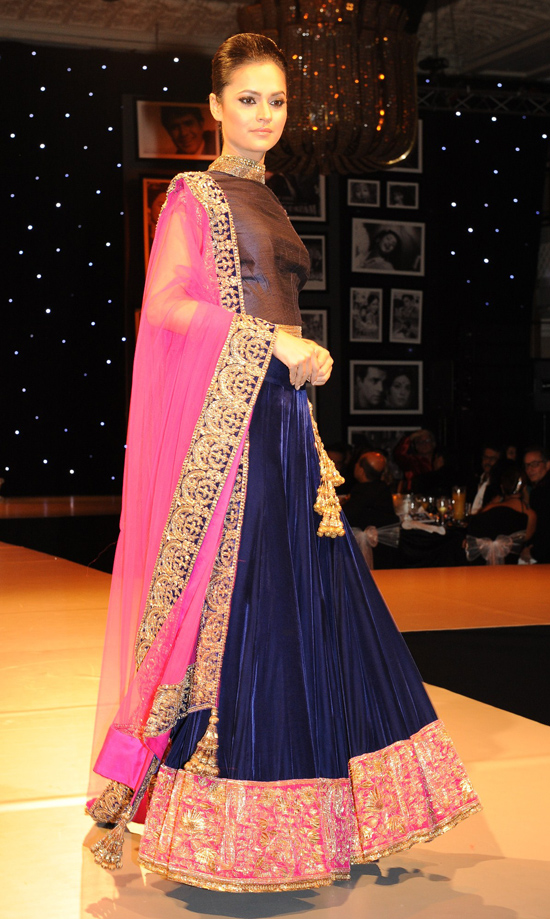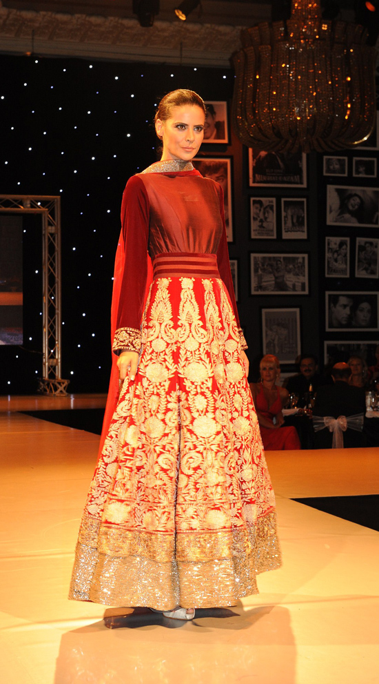 Manish Malhotra presented a festive collection to celebrate 100 years of Indian Cinema. The collection was showcased at an Annual Gala at Grosvenor House, London. Bollywood actresses’ Bipasha Basu and Esha Gupta walked the ramp for Manish.