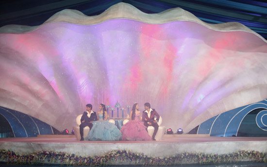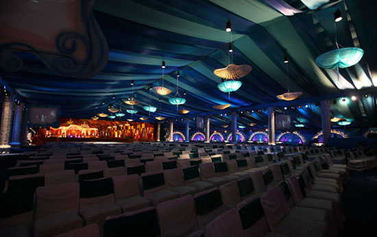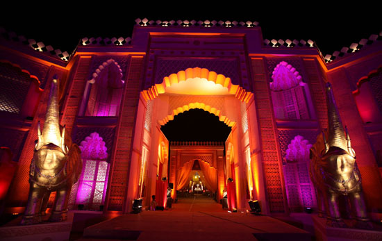 – After the Jodhaa Akbar theme wedding, the guests were asked to shift to another side of the reception which had an underwater and desert theme. The shell at the underwater theme reception was closed and opened once the bride and groom got into it.