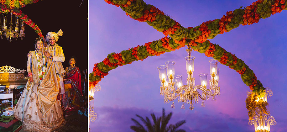 The ‘mandap’ comprised a palatial dome with two mini domes flanking it atop a dais. Featuring beautiful carvings, it overlooked the resort’s Turtle Beach and featured elephant carvings, beautiful friezes and garlands of flowers on the pillars.