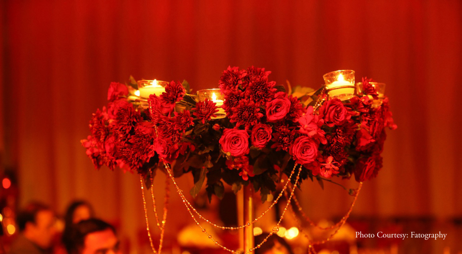 Mahaweer and Mehak’s reception was held at Le Meridien Dubai. The hotel’s 38 acres of landscaped gardens offered opulence and serenity. The property’s ability to combine modern luxury with unique splendor for premium wedding arrangements ensures that every occasion hosted there is an unforgettable affair. The groom shares, “My family had decided on this hotel since it has one of the largest ballrooms and was conveniently located not too far from the airport.” The royal floral decor was the highlight of the evening along with special dance performances that left guests entertained.