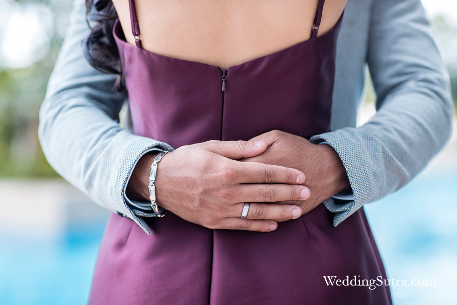 As they enjoyed viewing a beautiful sunset cosily together, the light from their platinum love bands emanated a gentle sparkle that matched their happy smiles. Mehal explains, “We feel so lucky to have had a chance to wear the platinum love bands. They symbolize love and permanence, something that our relationship is all about, and really would like to thank the entire WeddingSutra team for such a memorable experience.”