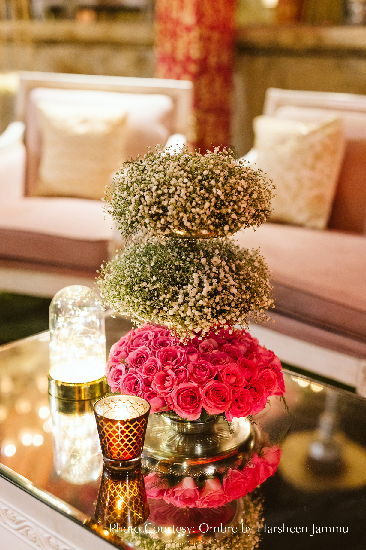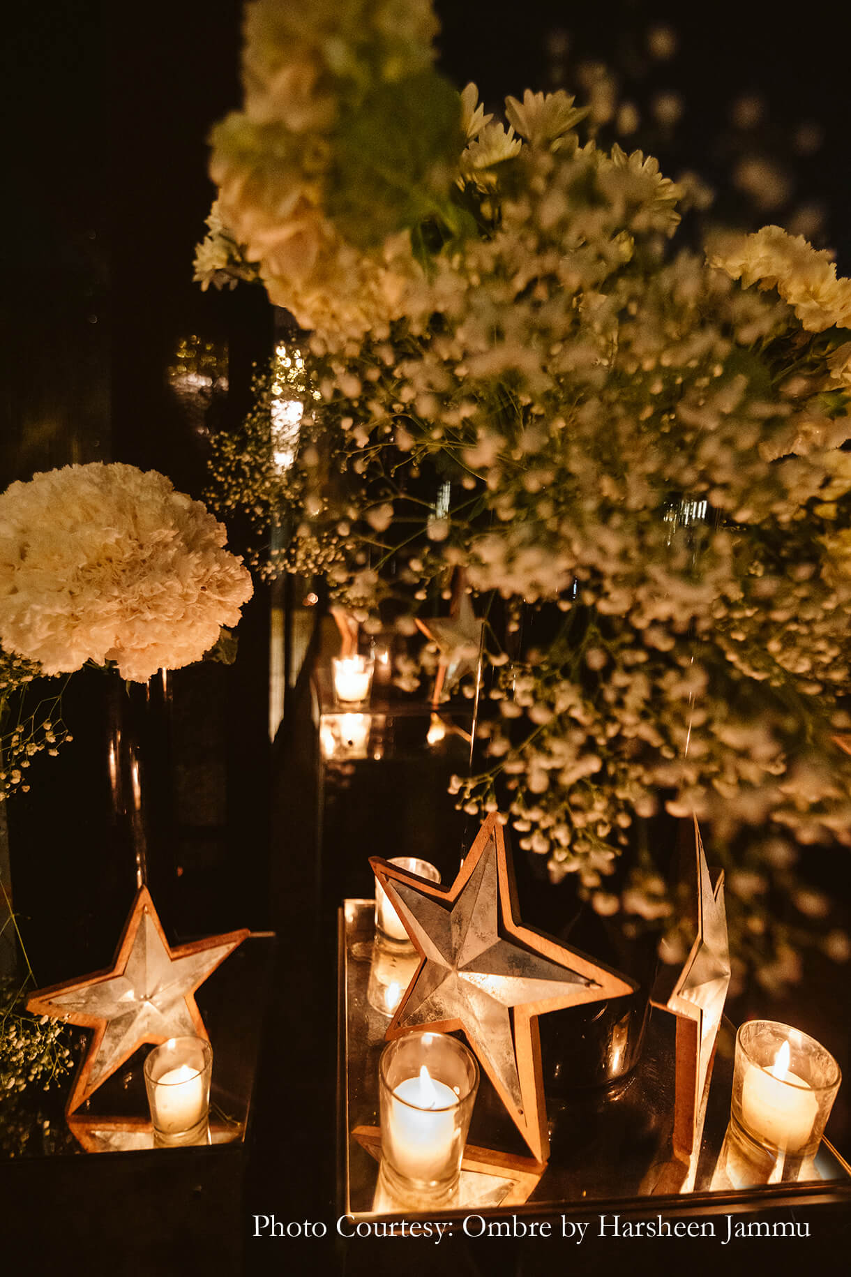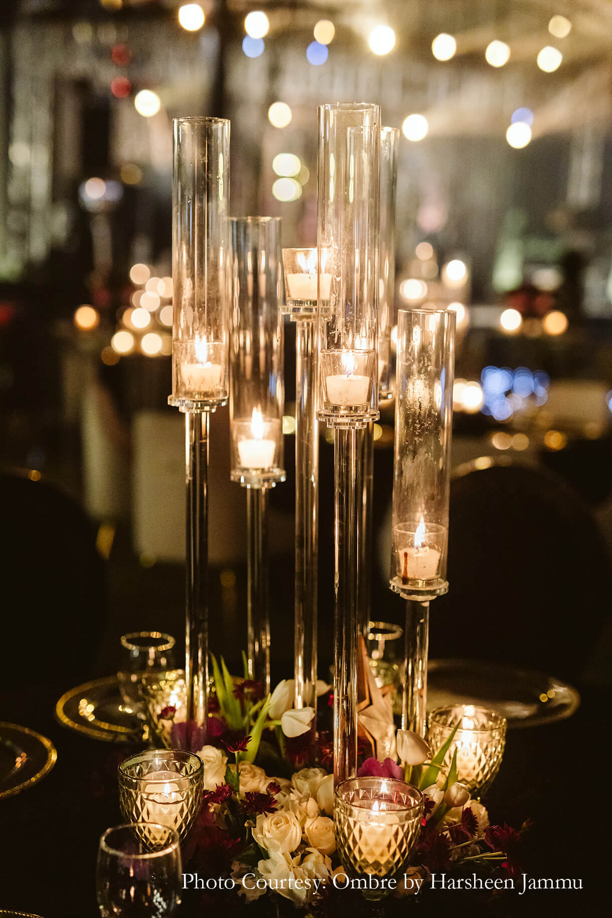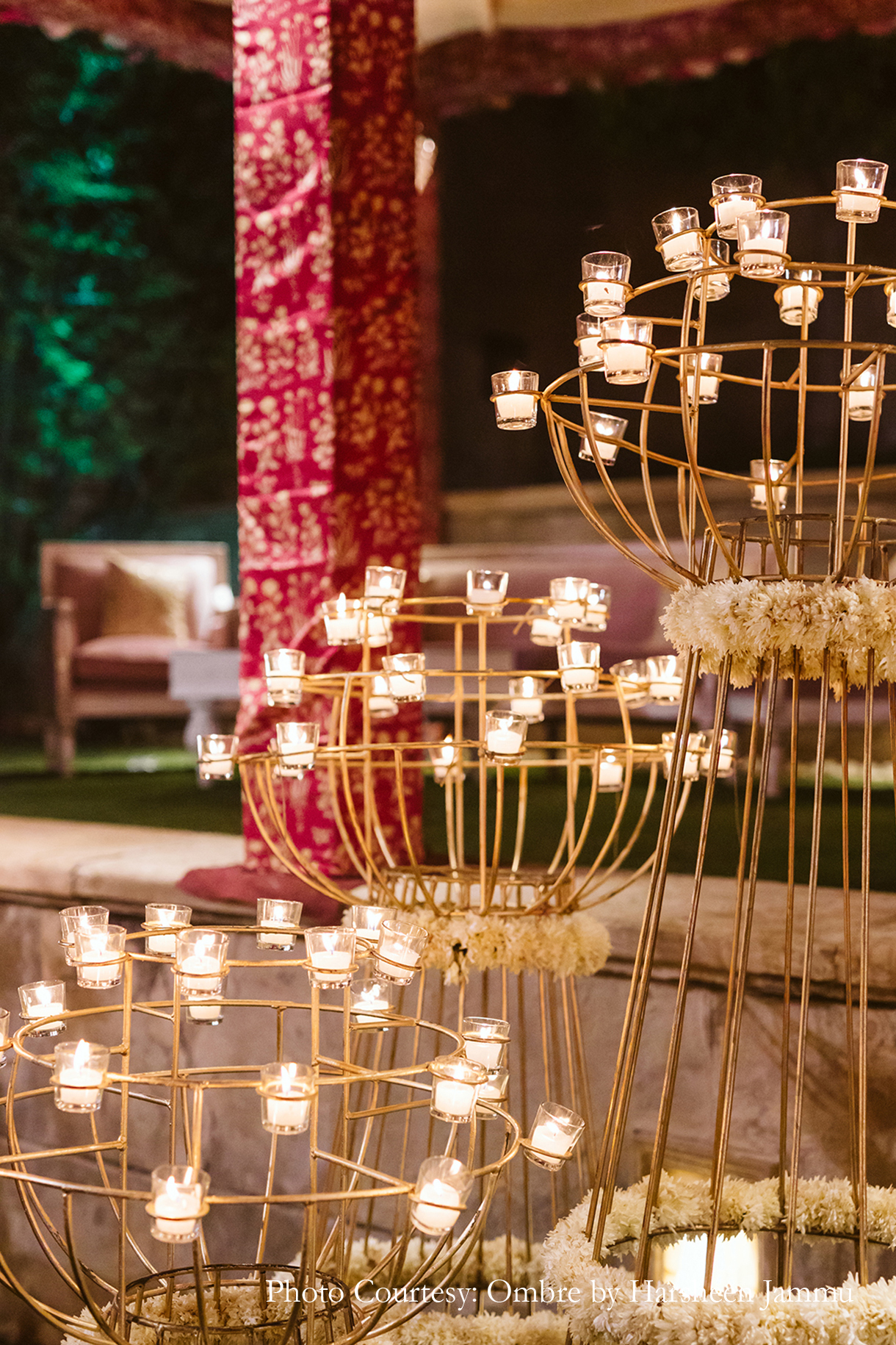 “As night fell, we transitioned into a more glamorous version of ourselves at the cocktail night. The event looked magical with its huge chandeliers, candles and floor lanterns. However, the highlight was the entryway which was decked up in candles creating a dreamy atmosphere”, shares Swasti.