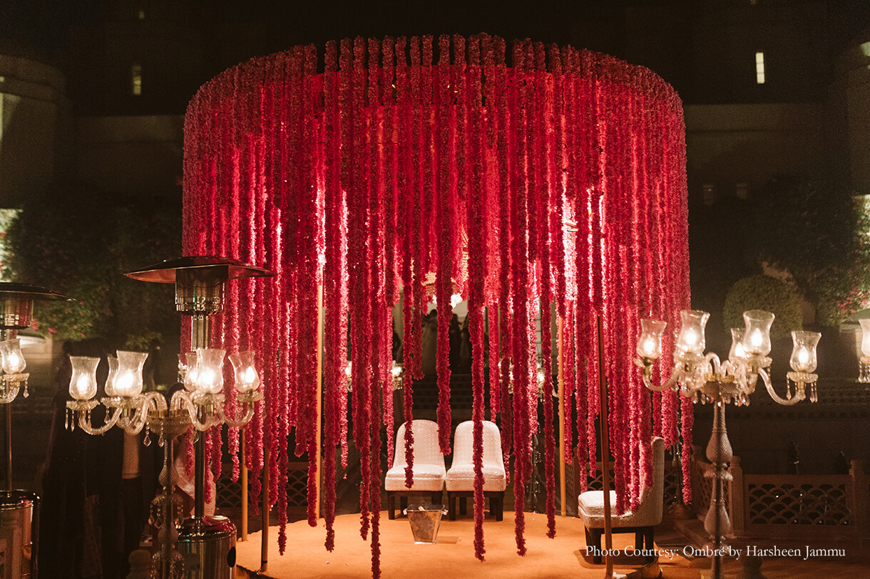 Minimalistic with a dash of vintage elegance, this couple’s floral all-red wedding mandap is bound to inspire!