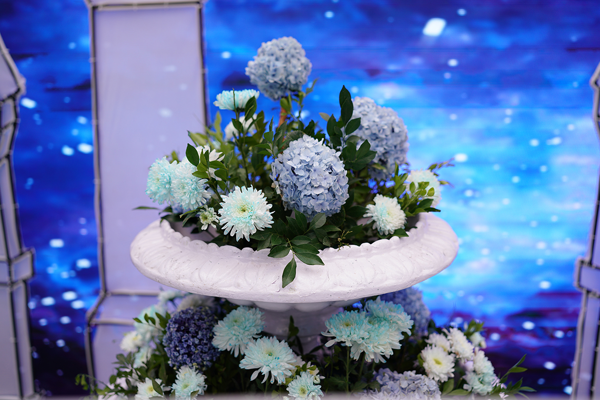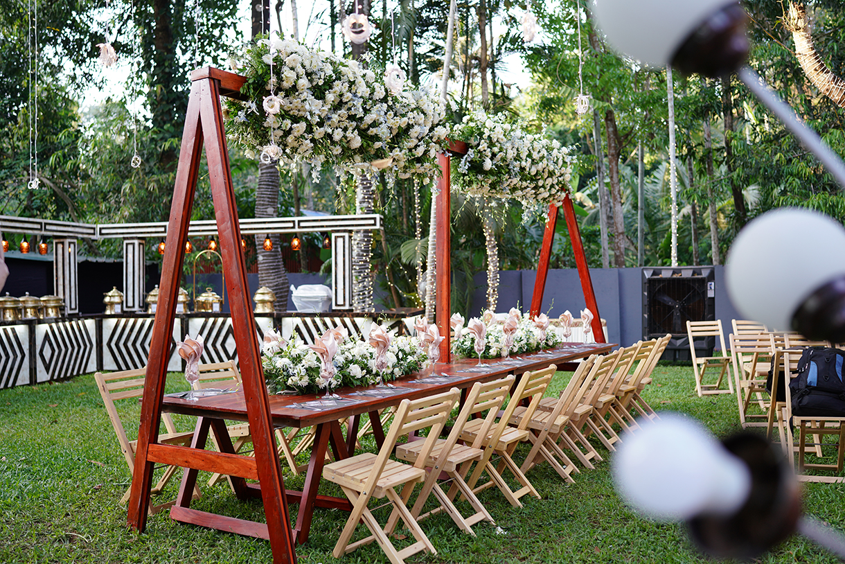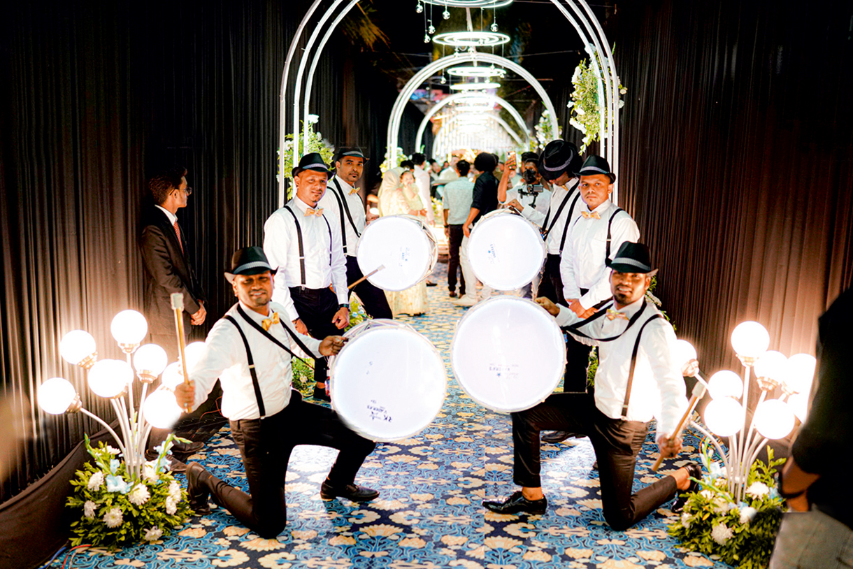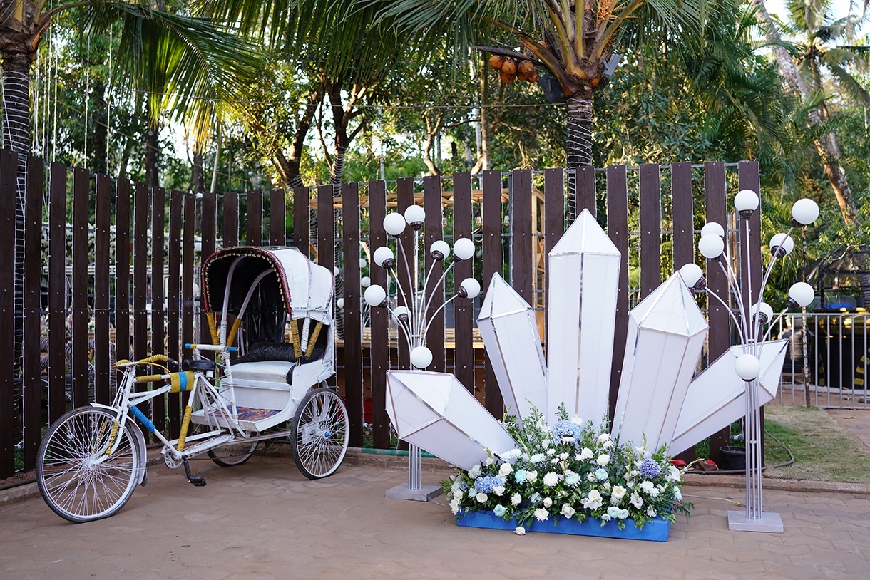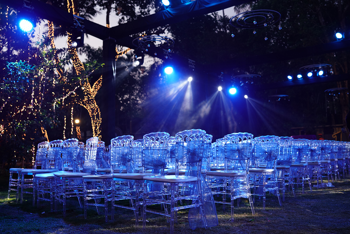 Stepping away from color schemes, themes, and entertainment frequently witnessed in luxurious Muslim weddings in Kerala, blue was chosen as the focal color, serene yet celebratory at the same time. Dubbed the “Blue Mist”, the evening was conceptualized as dreamy and tranquil where the misty December night would play its part. There is always a sense of magic associated with misty blue skies, and the planning team used this to bring a sense of anticipation and thrill to what was going to be a truly magical night.