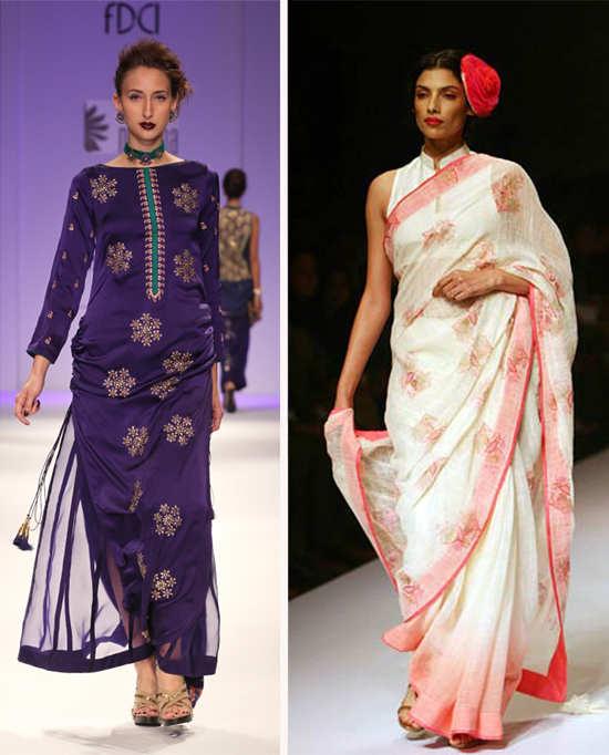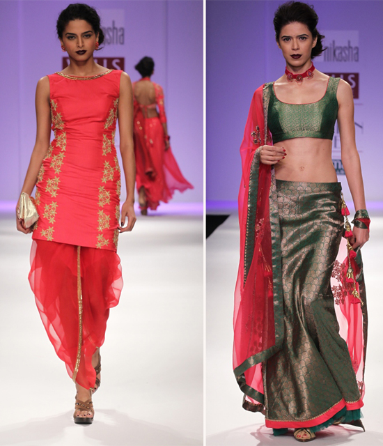 One of our favorite designers Nikasha Tawadey showcased a collection titled ‘Raat Ki Rani’ at the Wills Lifestyle India Fashion Week (WIFW) earlier this week. Nikasha knows how to design for women who prefer the understated look and the collection was youthful and stylish as we expected. It consisted of fitted silhouettes like multi-coloured jumpsuits, mini-kurtas, choli-tanks, dhotis, shararas, saris and waistcoats in shades like orange, red, green, yellow and purple.