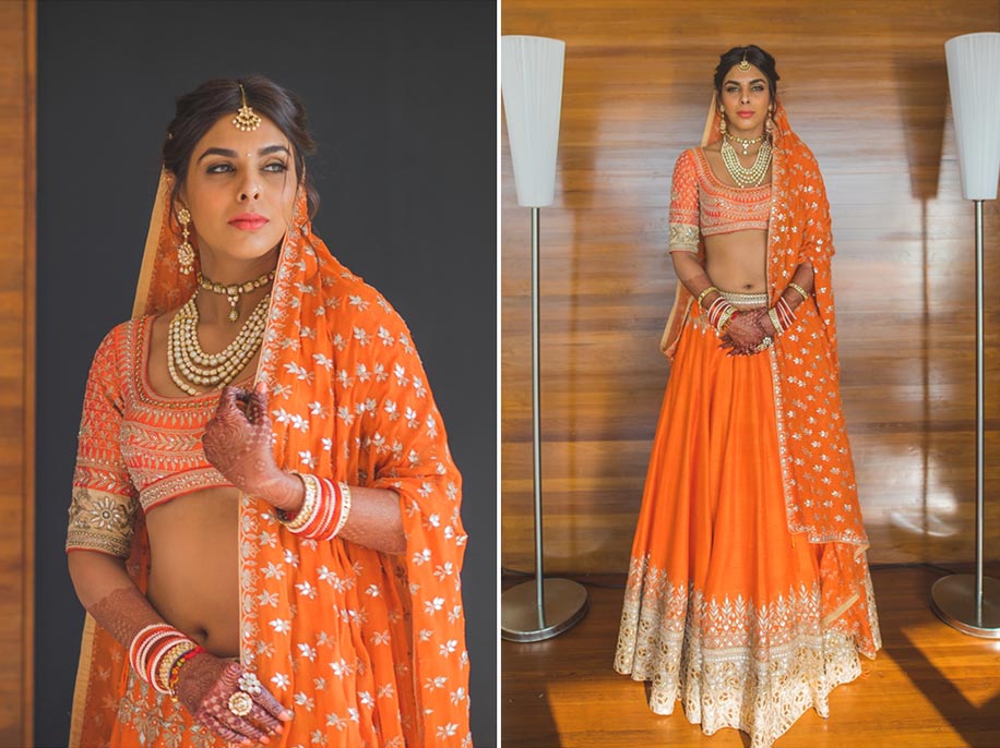 Aastha’s Orange and silver Lehenga from Anita Dongre