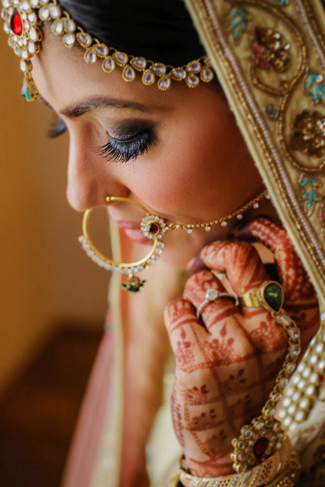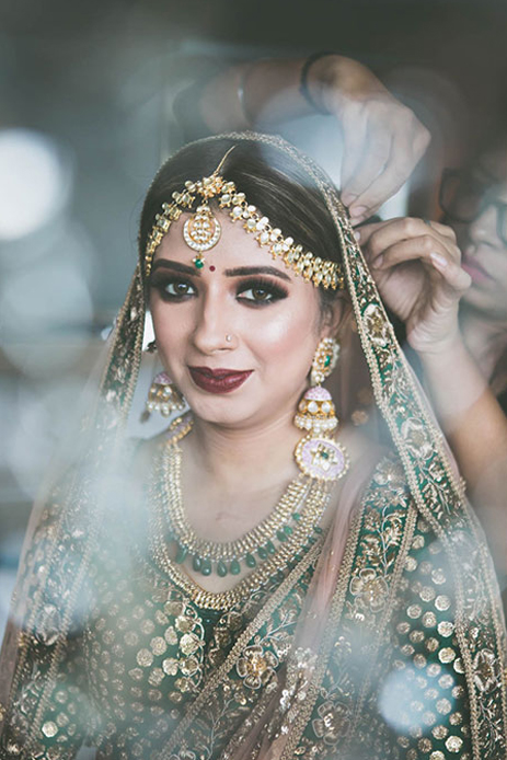 For the wedding, Swati chose a Sabyasachi inspired lehenga from Om Prakash Jawaharlal and paired it with a kundan and green beads choker to add a pop of color.