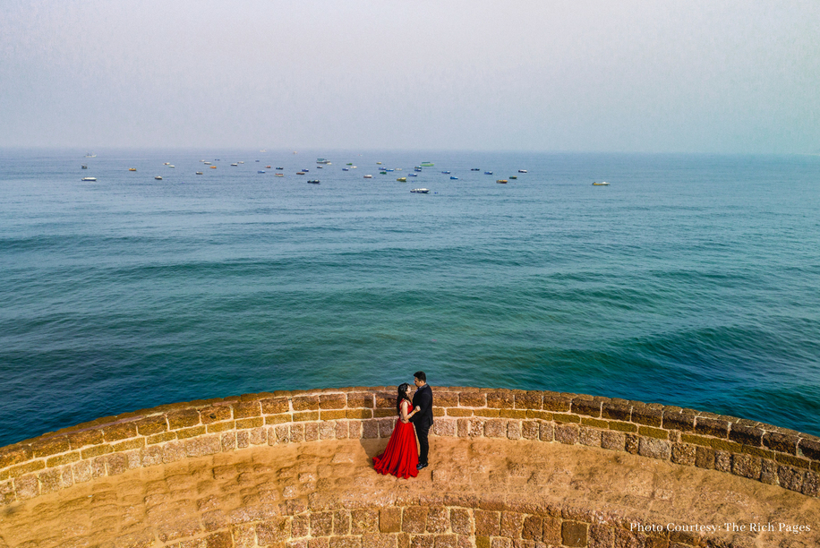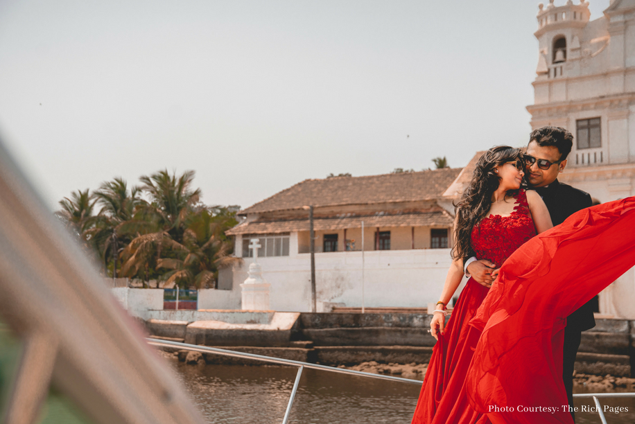 The Rich Pages deftly captured Vivek and Dipansy’s love in frames that make their shared glances and chemistry tangible against beautiful backdrops of Goa. The series evolves from casual stances to gorgeously posed photos that embody elegance and poise. Vibrant colors and clean frames work as a dominant factor in making their pictures classic. Some of the most memorable photographs from this photoshoot are of the duo posing on a cruise and that of their glowing silhouette bathed in a golden light.