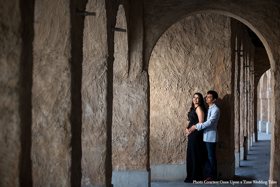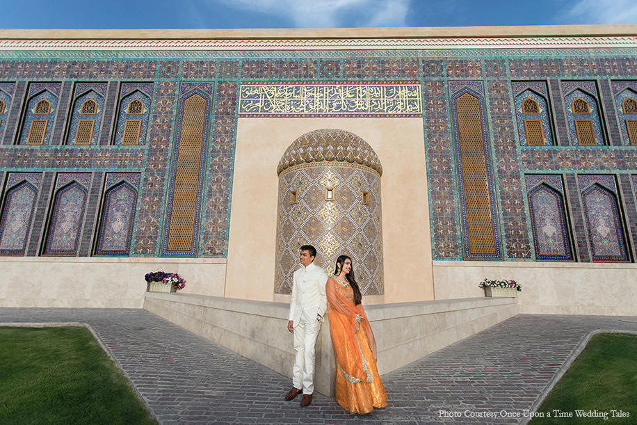 Frames from Devyani and Vinit’s photoshoot shot by Once Upon a Time Wedding Tales in Doha, Qatar exude a contemporary charm. Shot in a country rooted in ancient culture, the destination provided a range of backdrops – the desert, the cityscape in the distance and modern architecture from up close. Within each picture perfect frame, the couple stands out and their photographs are a beautiful representation of their love.