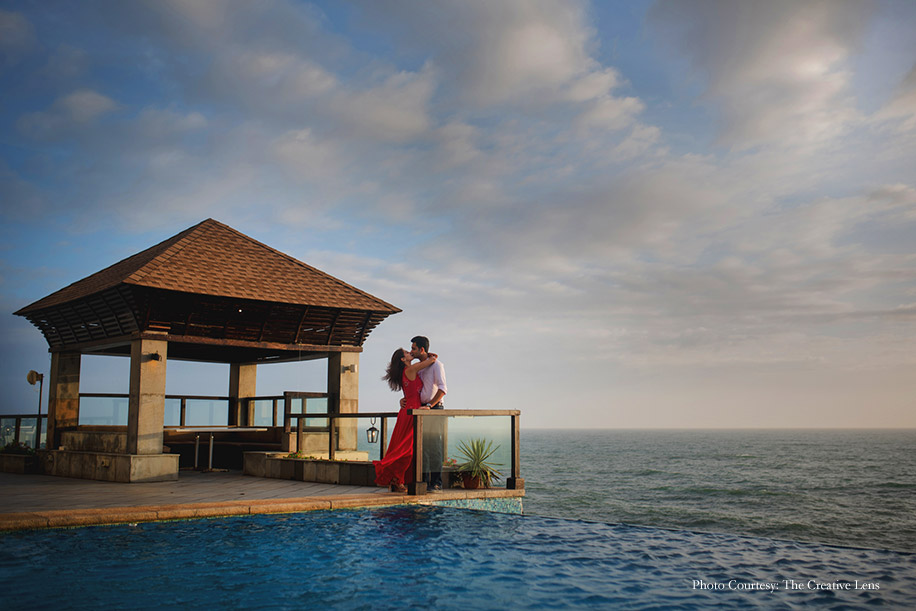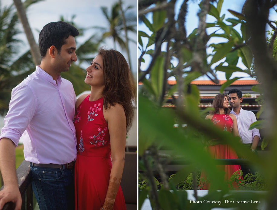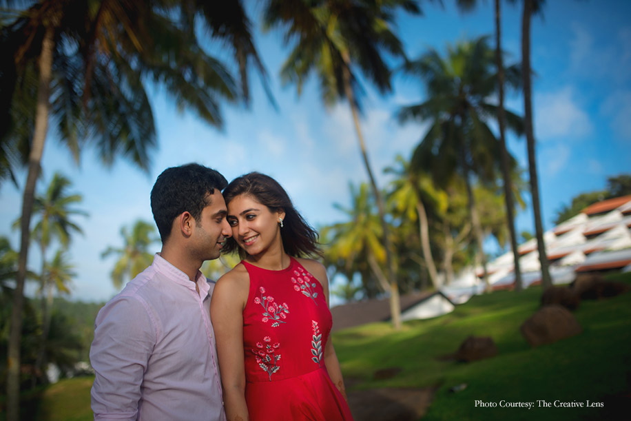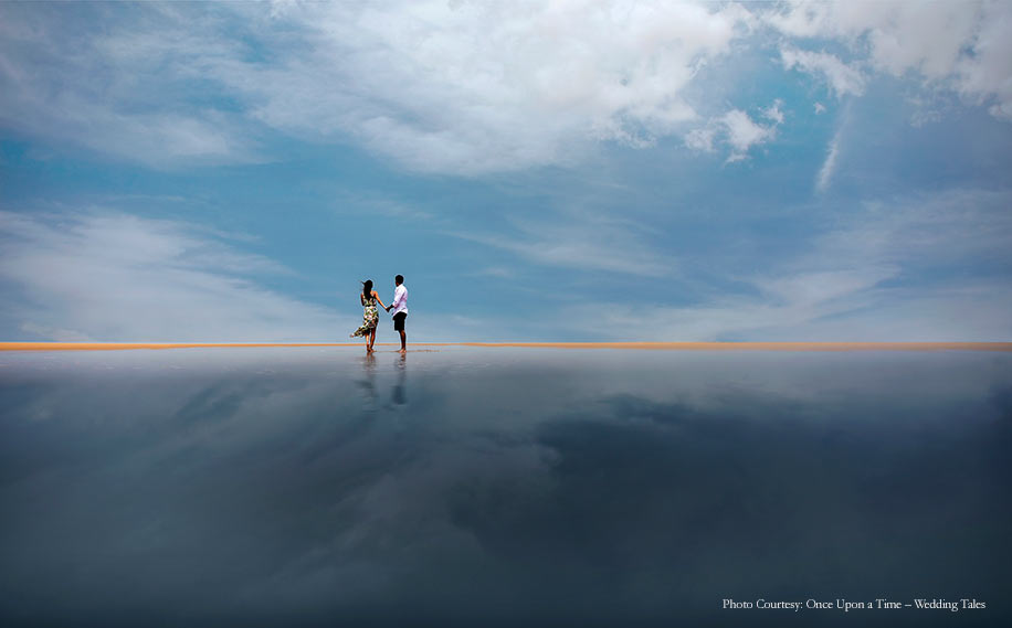 “Ashmita and Jeet’s pre-wedding shoot was done at The Leela, Kovalam, where the wedding was the next day. We wanted to keep the photos simple, with a feel of the place focusing primarily on the wonderful chemistry Ashmita and Jeet have. Destination weddings sometimes force couples to crunch time but Ashmita and Jeet were very cooperative with whatever time we had in hand. There were small rituals lined up immediately after the shoot, but they carried themselves superbly well so that even in a short time we got beautiful photos. Sometimes simple photos tell a thousand stories about the couple and this turned out to be one such shoot,” say Shweta and Soumak.