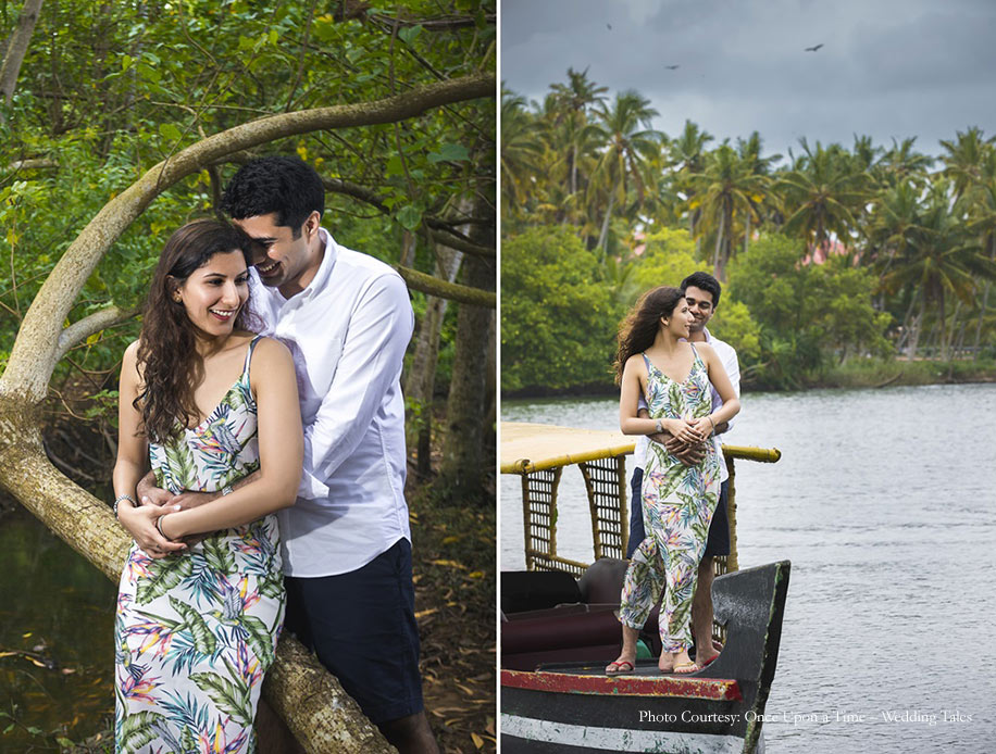 “The shoot was a simple casual outing. We went early to Poovar Lake in Kovalam, took a 2-hour boat ride and then shot some portraits on the light-house beach. We were done in 4 short hours,” Komal and Prateek tell us. The pre-wedding pictures are deceptively casual but capture not just great aesthetic but also nuanced emotions with clarity and finesse.