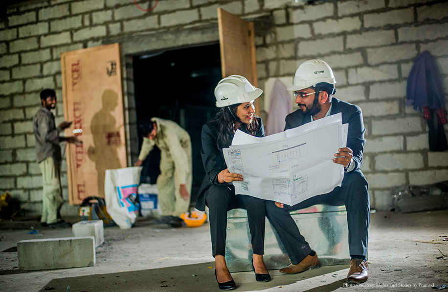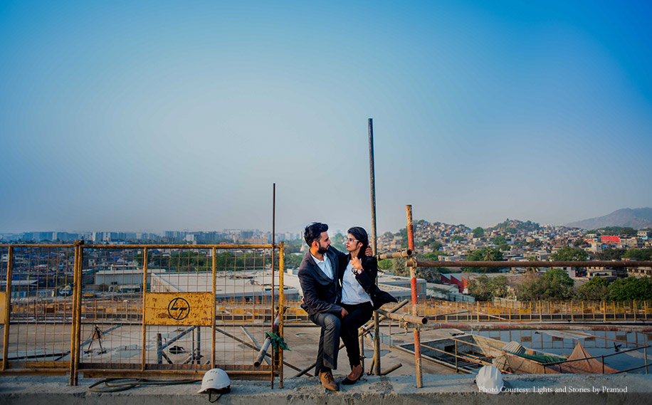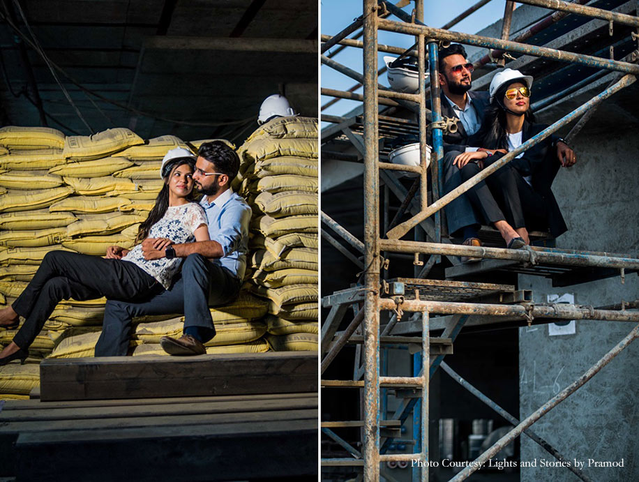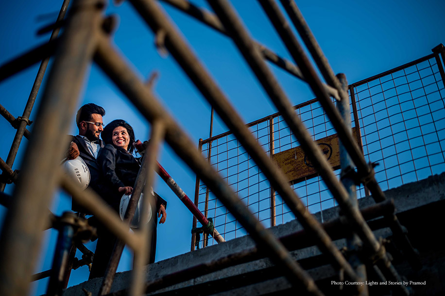 “We at Lights and Stories believe in creating out-of-the-box pictures. We are constantly thinking about new ideas. The groom Amol is a civil engineer and his bride Labdhi works with a construction company. We realized they’re both really passionate about their work and realized that our opportunity to push the envelope was right before us. We decided