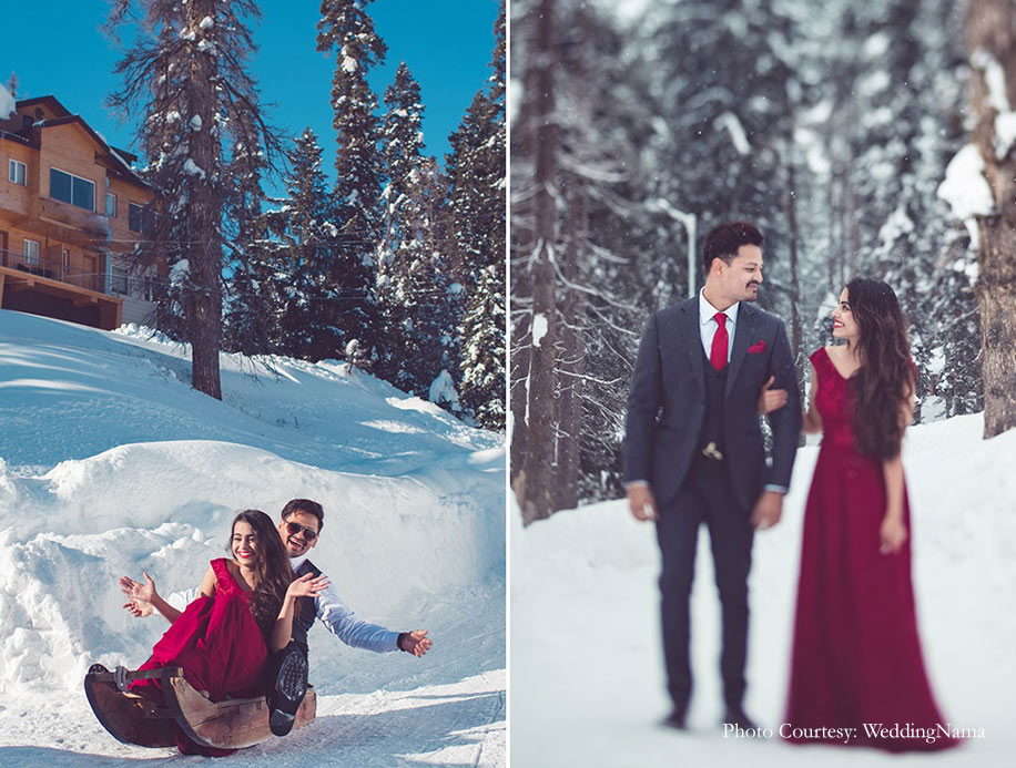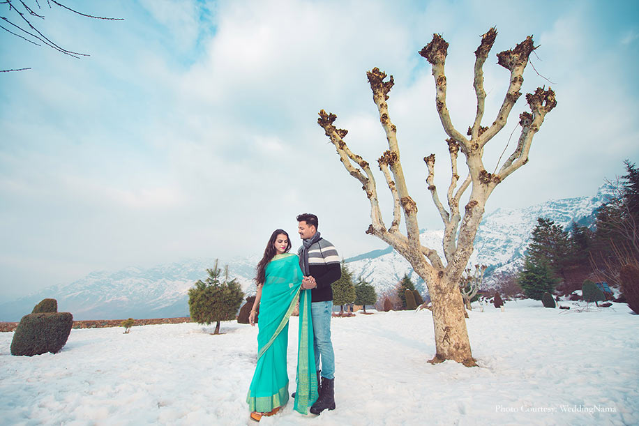“We spent a day in Srinagar and two days in Gulmarg to shoot the gorgeous couple Kiran and Vipul. It’s been our most challenging shoot in terms of the weather conditions. We braved temperatures below freezing point to accomplish something we’ve never done before. The amalgamation of a mad idea, a crazy couple in love, a stunning location, lots of snow, and of course our insane team is what you see in the final pictures” Ankita and Akash share.