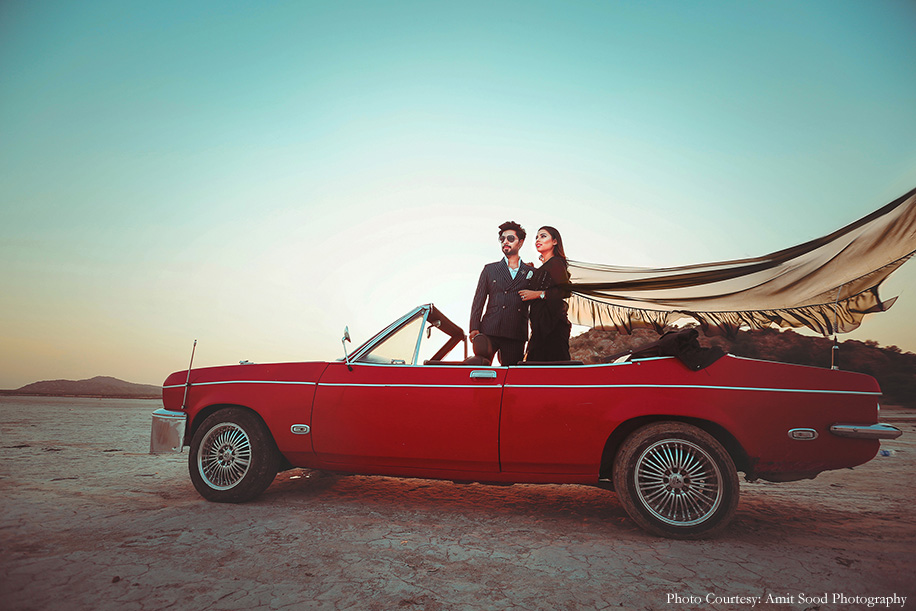 A glamorous couple amidst glitzy vistas with a vintage twist – this is what Nav and Naaz’s charming pre-wedding shoot was all about. Captured mesmerizingly by Red Veds, the couple’s flamboyant swag shines through these awesome pictures!