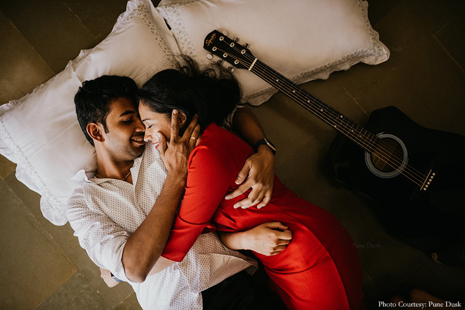 Isn’t true love about embracing each other’s interests? This wonderous photoshoot by Pune Dusk witnessed Nikhil and Tanushree doing exactly that by bringing together the couple’s love for music and swimming. A true reflection of the couple and their feelings for each other, these enchanting pictures were shot at a private villa in Mulshi, and just scream couple goals!
