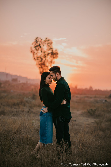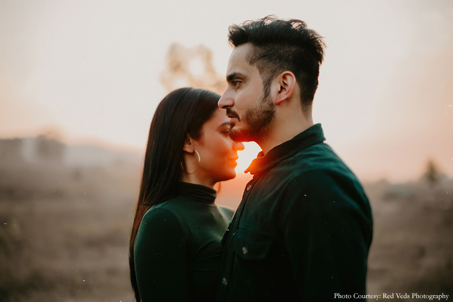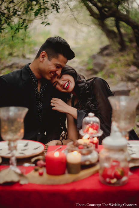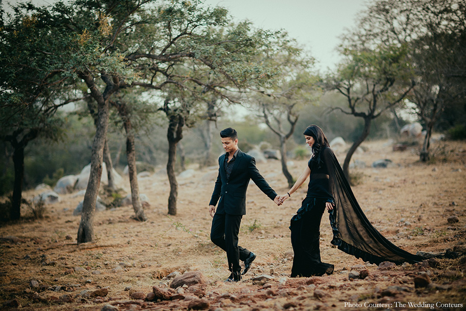 With a ‘Date in the Lap of Nature’ theme, Sumedha and Akshit’s romantic pre-wedding shoot was in the lush forest of Sohna, near Gurugram. Gorgeous black outfits, a dinner date amidst the greenery and the alluring forest atmosphere took the photos of this awe-inspiring shoot by The Wedding Conteurs to the next level.